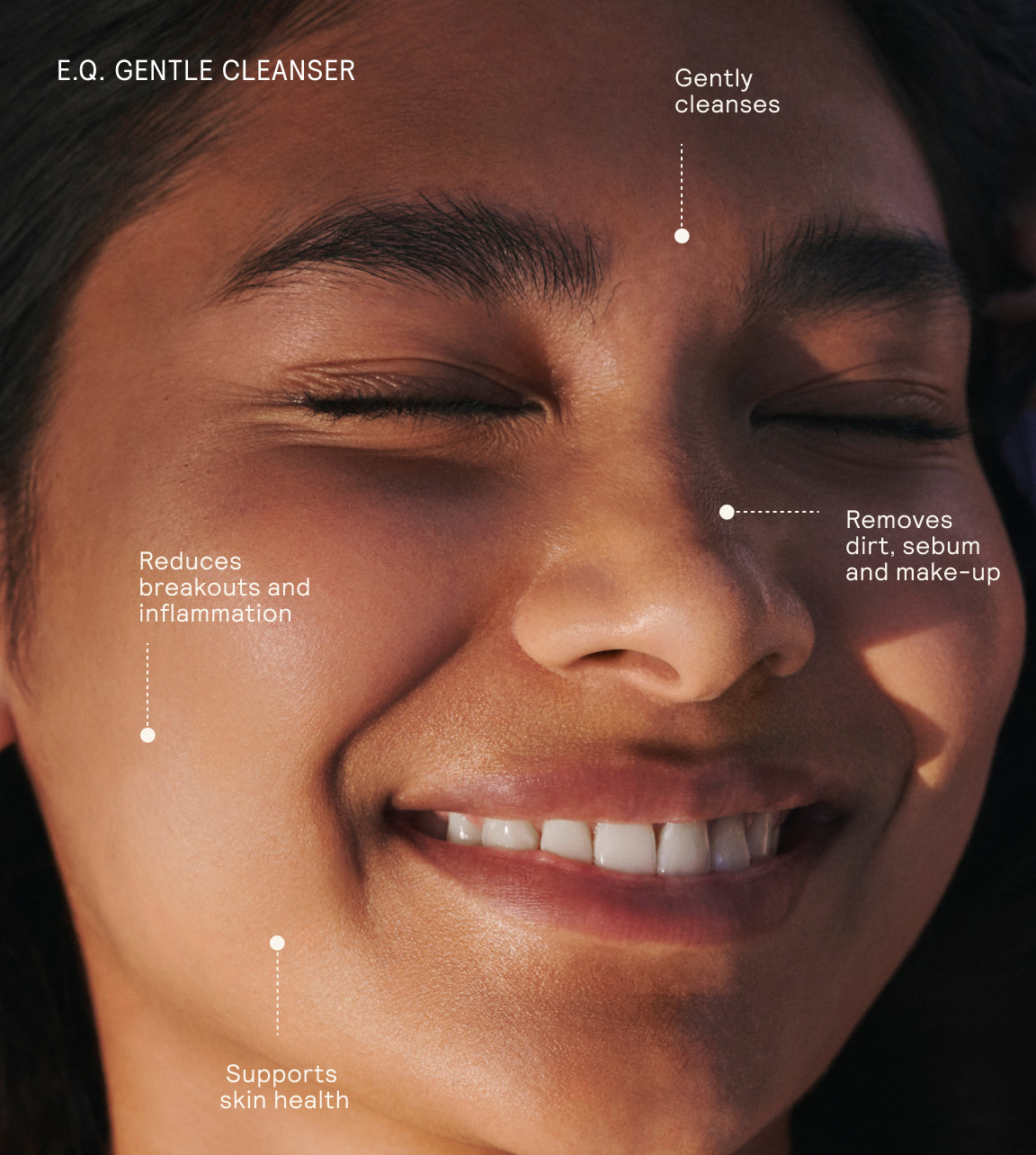 Morning and night, we recommend massaging a dime-size amount of cleanser gently into wet skin, paying close attention to any areas that experience sebum, sweat or make-up build up throughout the day, rinse thoroughly and gently pat dry. Follow up with our E.Q. Rescue Serum and E.Q. Daily Moisturizer to complete our E.Q. Clear Skin Collection regimen.